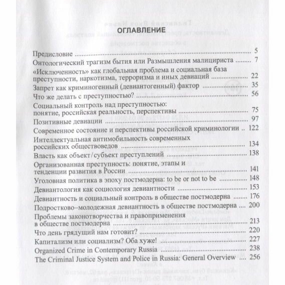 Четвертый по счету сборник статей автора (предыдущие изданы в 2004, 2009 и 2013 годах) включает избранные статьи, опубликованные в основном в период с 2013 по 2016 годы. В них представлен авторский взгляд на преступность и отдельные ее виды, на социальный контроль над преступностью и девиантными проявлениями, на творчество как позитивную девиантность, а также рассуждения об экономических, социальных процессах в современном обществе постмодерна, влияющих на состояние и динамику преступности и девиантности. В сборник включены две статьи на английском языке, изданные за рубежом.