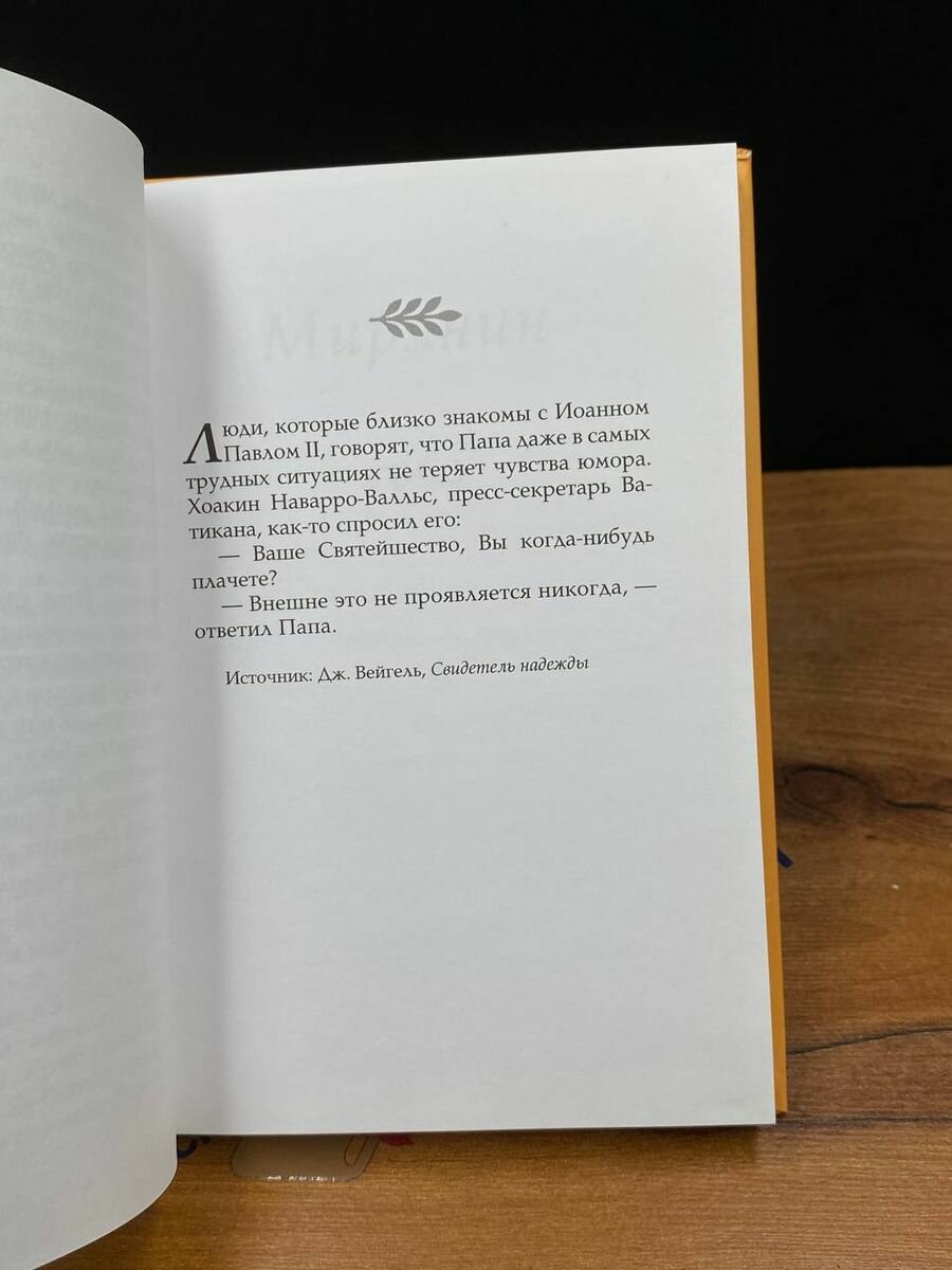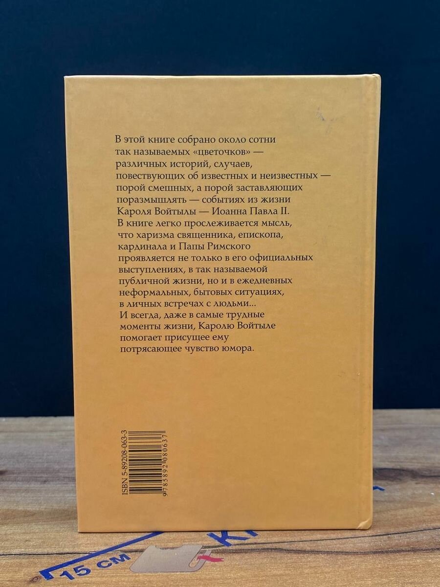 В этой книге собрано около сотни так называемых «цветочков» — различных историй, случаев, повествующих об известных и неизвестных порой смешных, а порой заставляющих поразмышлять — событиях из жизни Кароля Войтылы — Иоанна Павла II. В книге легко прослеживается мысль, что харизма священника, епископа, кардинала и Папы Римского проявляется не только в его официальных выступлениях, в так называемой публичной жизни, но и в ежедневных неформальных, бытовых ситуациях, в личных встречах с людьми... И всегда, даже в самые трудные моменты жизни, Каролю Войтыле помогает присущее ему потрясающее чувство юмора.