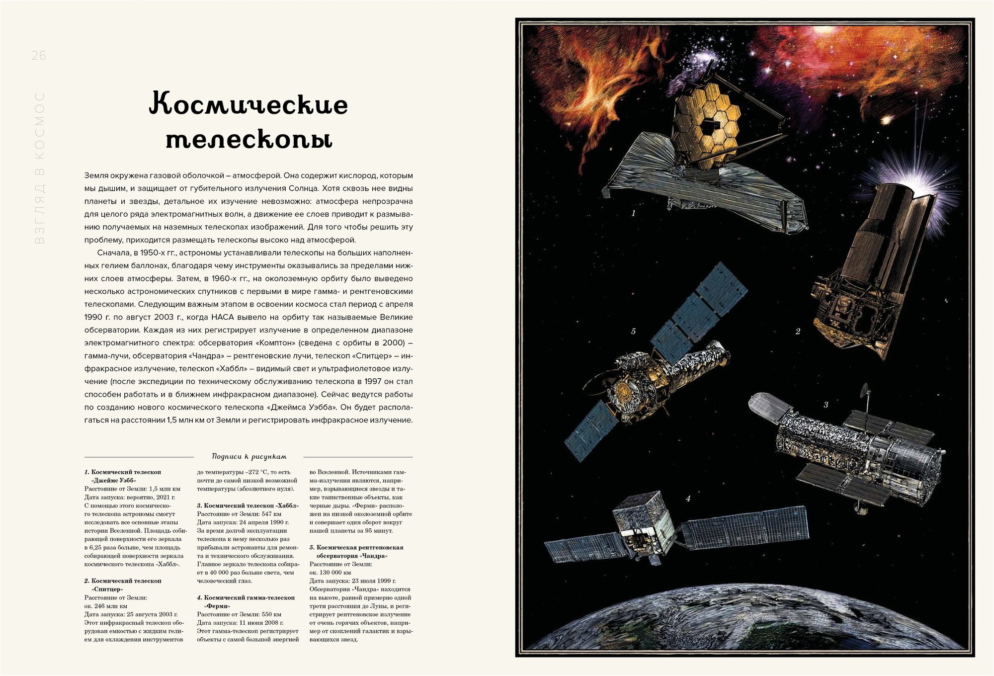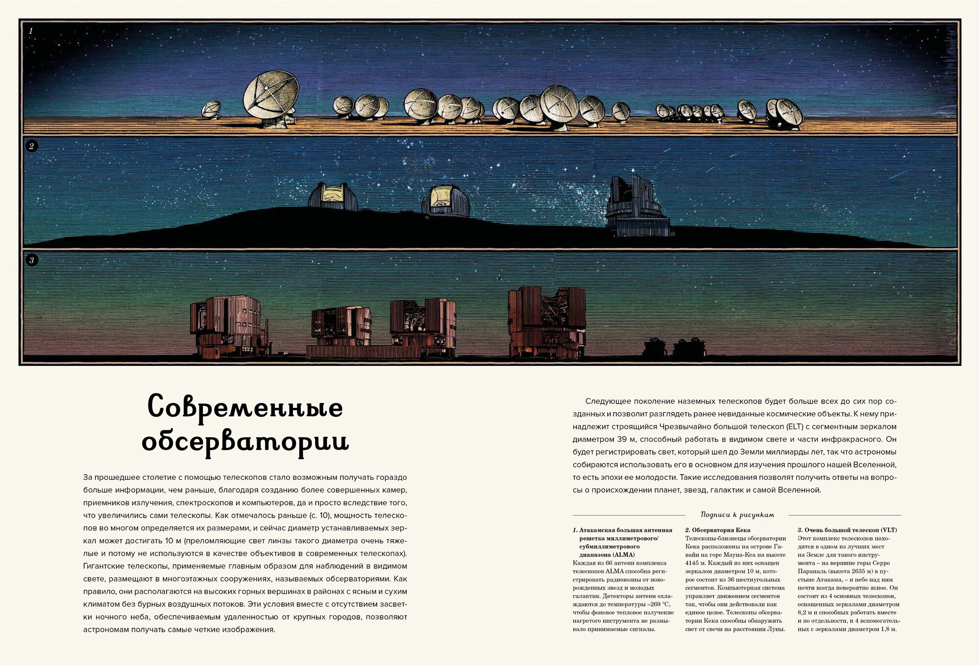Очень интересная и увлекательная книга по астрономии. В ней очень доступно и наглядно объясняются различные факты из астрономической науки. Книга представляет собой своеобразную "экскурсию в планетарий", поэтому её разделы называются залами. Книга содержит семь таких "залов", которые описывают инструменты астрономии, Солнечную систему, Солнце, объекты ночного неба, звёзды, галактики и Вселенную в целом. Книга сделана из плотной офсетной бумаги, много красочных рисованных цветных иллюстраций. Она имеет очень большой формат. Книга очень подойдёт всем, кто увлекается астрономией и космосом, особенно детям.