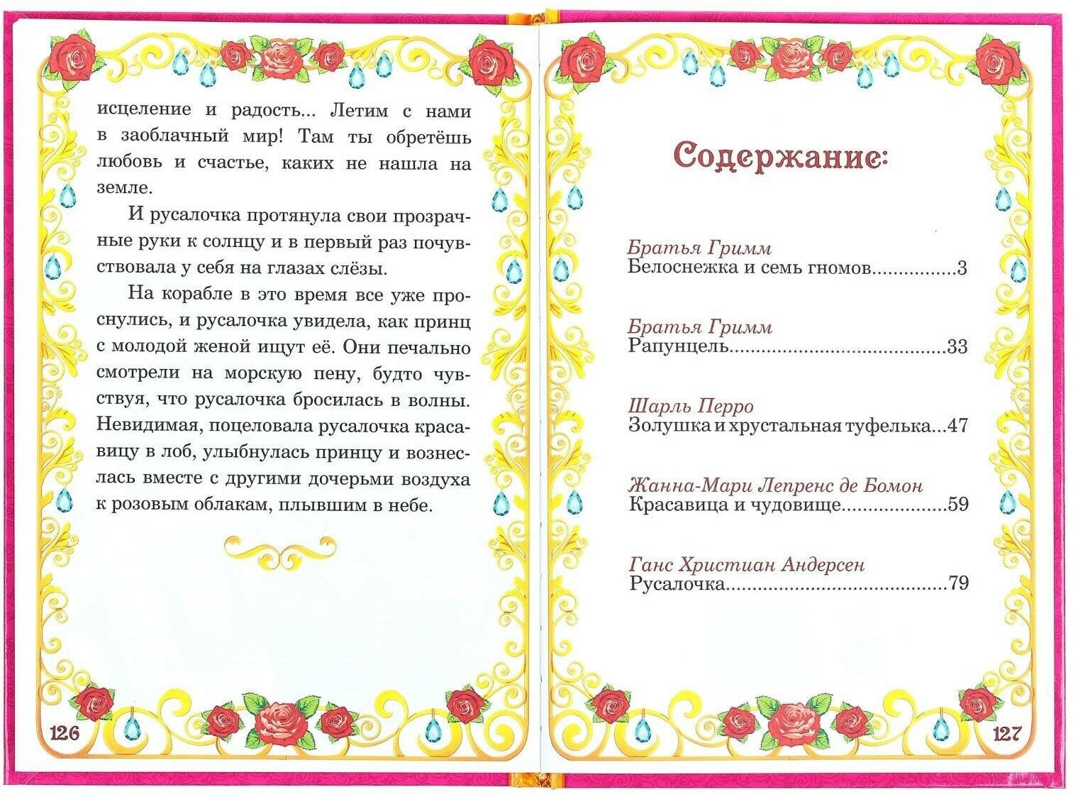 Сказки в книге самые известные, диснеевские,богатое оформление, слог у сказок адаптированный, несложный. Очень классная розовая глянцевая обложка, прямо девочковая🤩 также хочу отметить, что в таком же формате "Буква-Лэнд" издали и другие книги сказок про животных, сказки Пушкина и т.д. можно собрать целую коллекцию 🙂