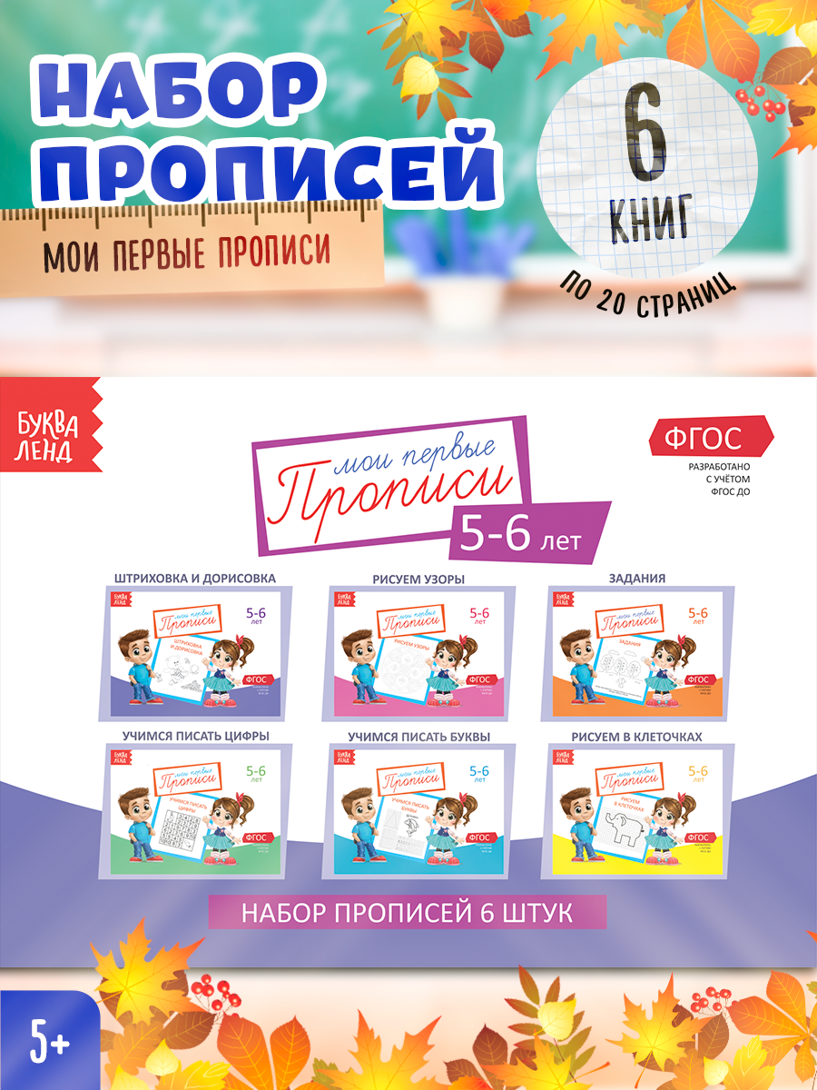 Набор прописей для детей 5-6 лет комплект из 6 книг (Козлова Анастасия Александровна); Буква-ленд, 2019