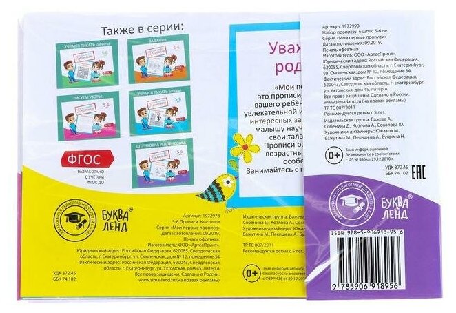 | Серия | Мои первые прописи |
