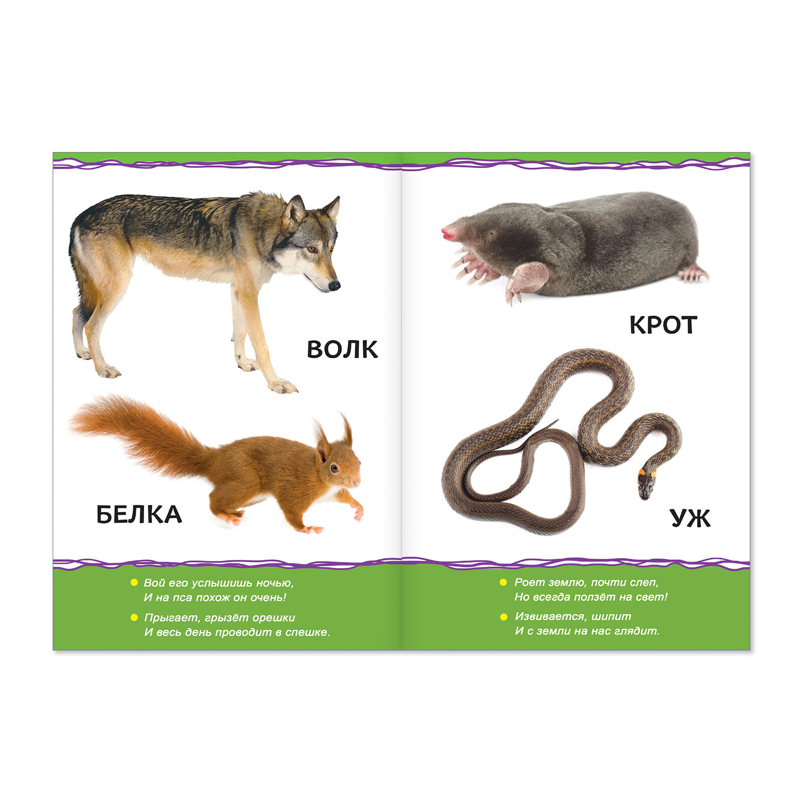 Книжка картонная "Животные леса", 10 стр. вместе с обложкой. В издании «Лесные животные» вы найдёте фотографии с загадками в стихотворной форме, так что изучать обитателей чащи будет легко и занимательно. Ребёнок запомнит всех зверей и познакомится с увлекательными подробностями их жизни.Картонные книги «Для малышей» — это обучающие пособия, которые содержат набор необходимых знаний об окружающей среде и человеке.Главное достоинство серии — удобный формат и яркие реалистичные картинки, формирующие правильное представление о мире. Иллюстрации сопровождаются вопросами, интересными фактами и весёлыми стишками. Учиться с этими книгами — одно удовольствие!