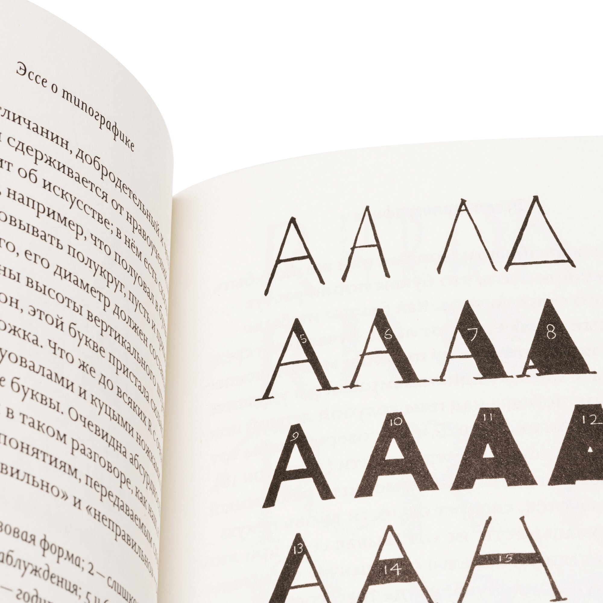 Книга содержит предисловие автора, а также главы "Обстоятельства времени и места", "Леттеринг", "Типографика", "Изготовление пуансонов", "О бумаге и краске", главу о верстатке, которая названа "Прокрустово ложе", "Инструменты", "Книга" и заключительную главу, где автор задаётся вопросом "И зачем нам эти буквы?". Кроме того, в книгу включены послесловие Рустама Габбасова об Эрике Гилле и его времени, очерк Евгения Юкечева о шрифте Джоанна, даты жизни и творчества Эрика Гилла, а также избранная библиография.