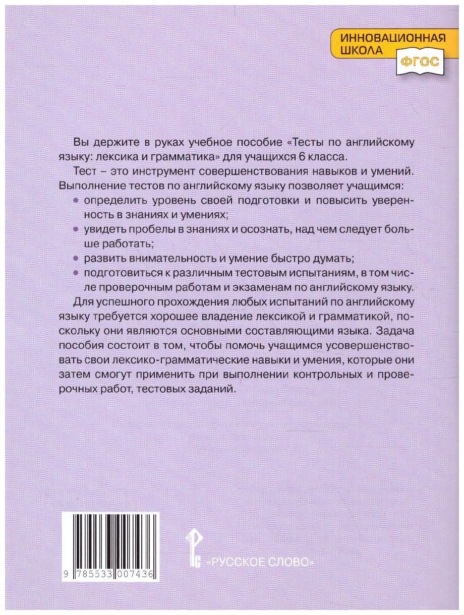 Тесты по английскому языку Лексика и грамматика для 6 класса общеобразовательных организаций (Тетина Светлана Владимировна, Титова Елена Александровна); Русское слово, 2019