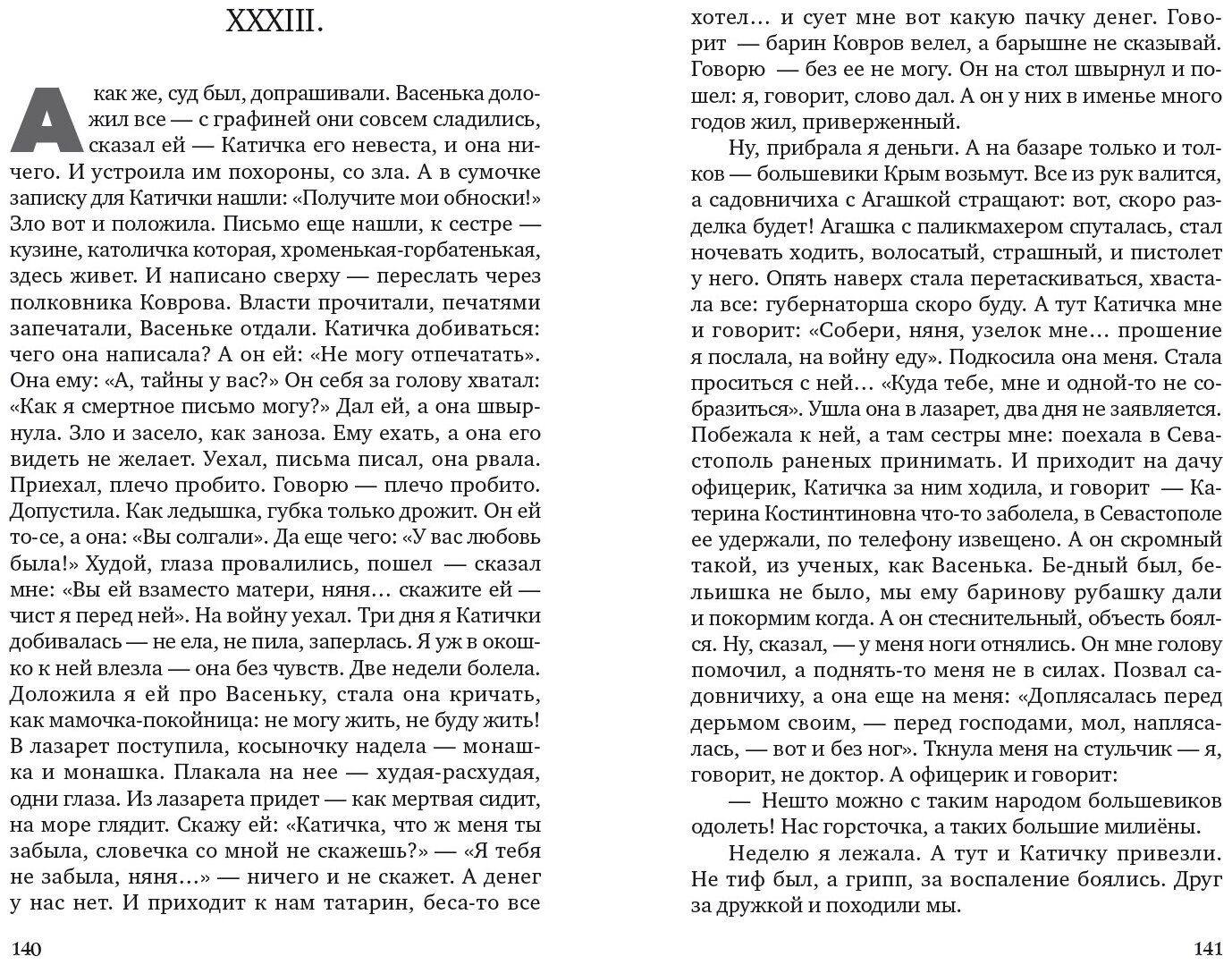 Вместе с нянечкой мы наблюдаем за историей страны, семьи, людских взаимоотношений - чего только она не повидала. И всякий раз душа болит за Катю - избалованную, сердобольную, мечтательную, родную.