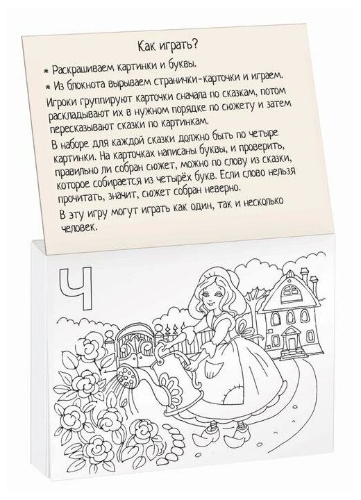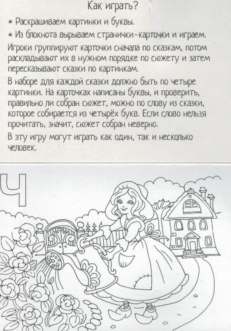 Эта книжечка в виде раскраски посвящена теме сказок, с героями которых ребёнок должен познакомиться до школы. Странички книжки легко превращаются в карточки, с которыми потом интересно и полезно будет играть. С условиями игры можно ознакомится на обороте обложки. Во время игры отрабатываются такие полезные навыки как знание букв и чтение слов, умение пересказывать и выстраивать действия в правильном порядке. Кроме того, ребенок сможет развить смекалку, речь, потренировать память, внимание и моторику руки.