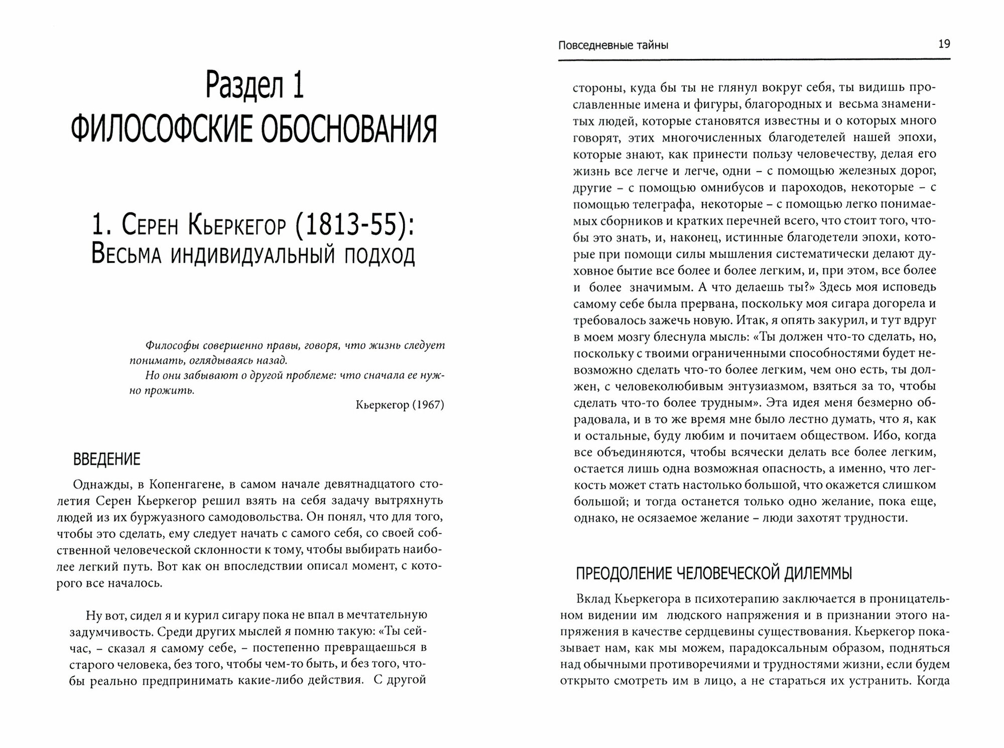 Пожалуй, эта книга ни в чём не уступает "Экзистенциальной психотерапии" Ирвина Ялома. Эмми Ван Дорцен прекрасно владеет и стилем, и имеет глубокие знания в области экзистенциальной терапии. Тираж мизерный. Кстати, и Ялом, и Ван Дорцен уделяют особое внимание Сёрену Кьеркегору, основоположнику экзистенциализма. Экзистенциальная психология (Виктор Франкл, Ролло Мэй) и экзистенциальная психотерапия (Ялом, Ван Дорцен) немыслимы без экзистенциальной философии Кьеркегора. Впрочем, даже величайший психопатолог и психиатр Карл Ясперс отдаёт должное великому датскому религиозному мыслителю... Рекомендую прочитать "Понятие страха" Кьеркегора, чтобы лучше ориентироваться в экзистенциальной психологии и психотерапии.