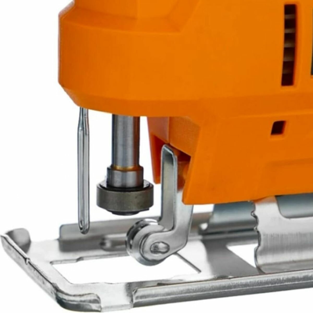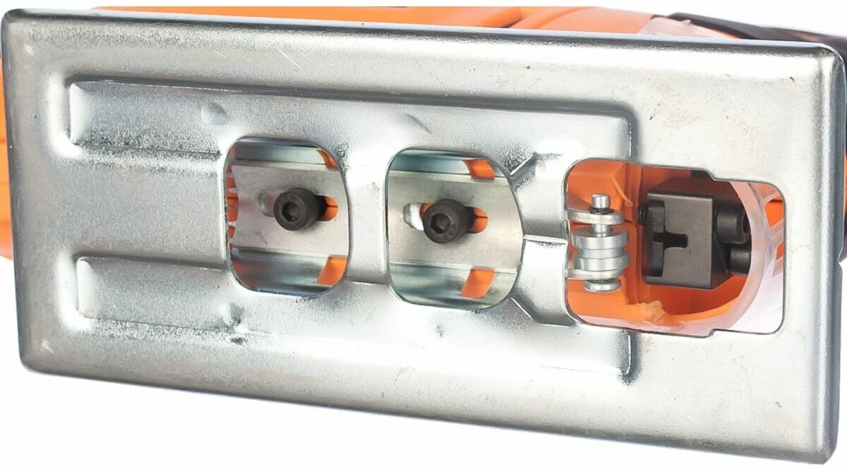 - Неудобное и странное крепление пилки на двух винтах-шестигранниках, расположенных под прозрачной защитной панелью.