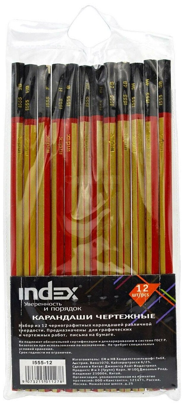 Набор карандашей Index чернографитных (I555-12)
