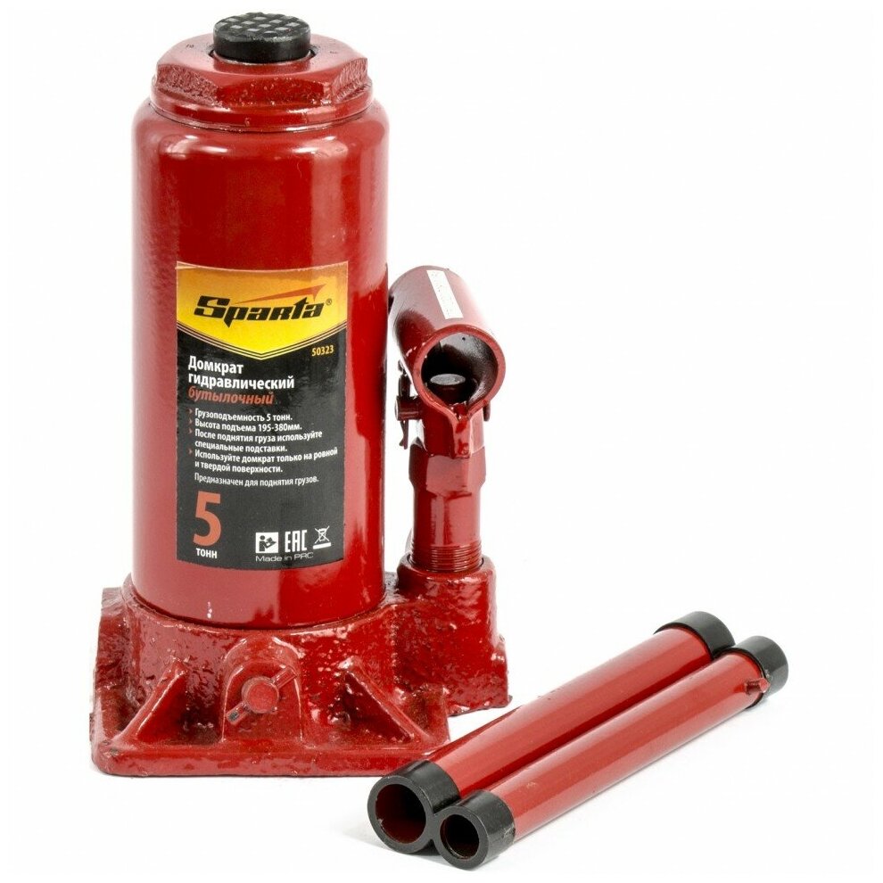 - Домкрат гидравлический бутылочный, 5 т, h подъема 195-380 мм SPARTA 50323