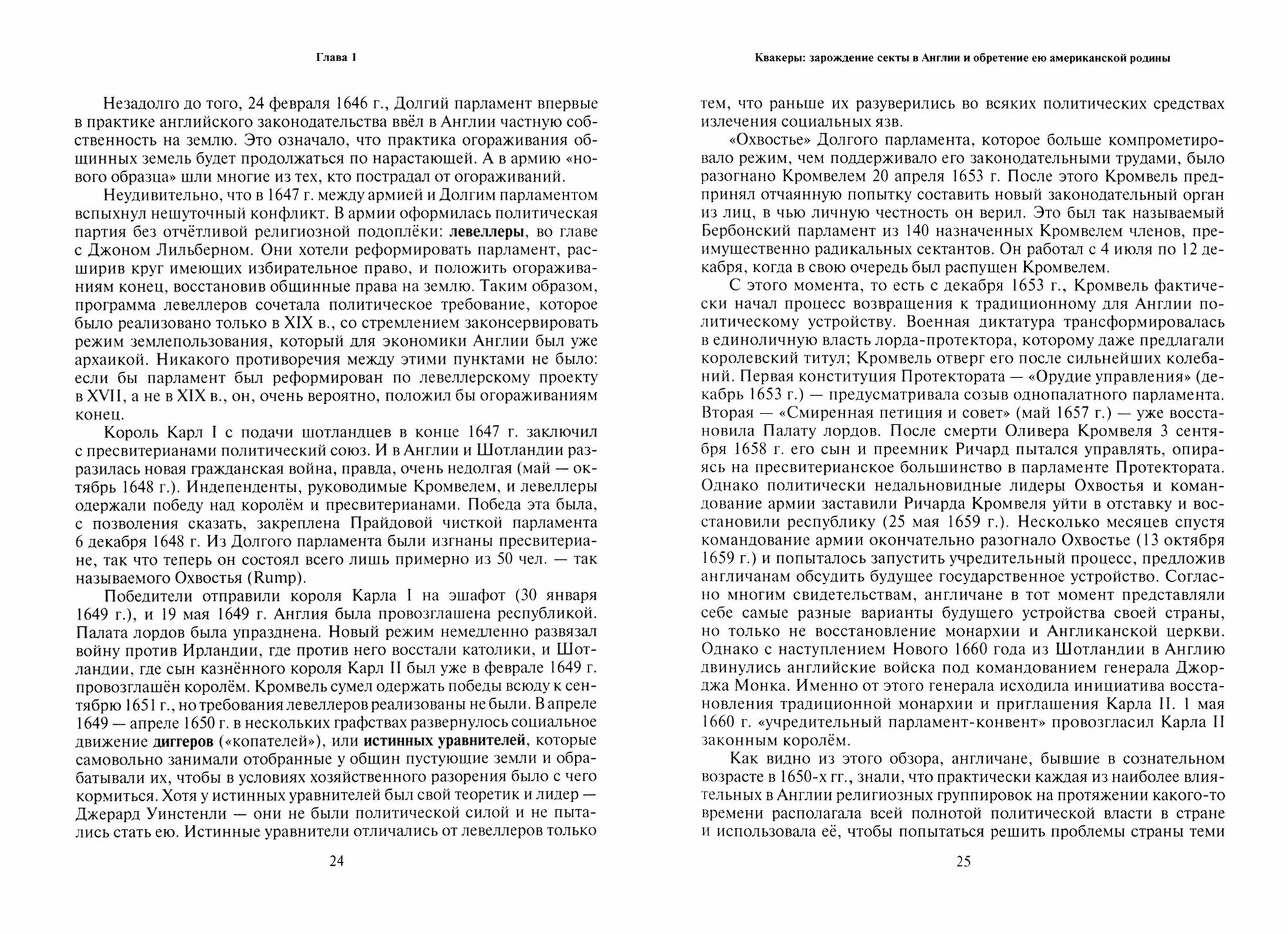В новой книге, которой и посвящена эта рецензия, С. А. Исаев с честью продолжает труд Л. Ю. Слёзкина, помещая в центр внимания квакерскую колонию Пенсильванию. Кроме самой колонии много внимания уделяется квакерам, для которых она изначально предназначалась, и, конечно же, основателю - Уильяму Пенну. Думаю, не будет сильным преувеличением утверждение, что примерно наполовину книга является биографией замечательного человека У. Пенна, значительную часть которой составляет описание его полемики по различным религиозным и политическим вопросам. Особенно подробно освещена деятельность Пенна по защите и отстаиванию интересов квакеров - это, на мой взгляд, наименее интересная часть книги, даже несмотря на то, что автор пишет о религиозных вопросах с большой ясностью и пониманием - очень уж много Пенн спорил по не самым актуальным на сегодняшний день вопросам.