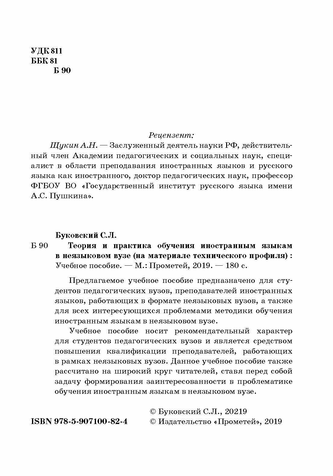 Теория и практика обучения иностранным языкам в неязыковом вузе (на материале технического профиля) (Станислав Леонидович Буковский); Прометей, 2019