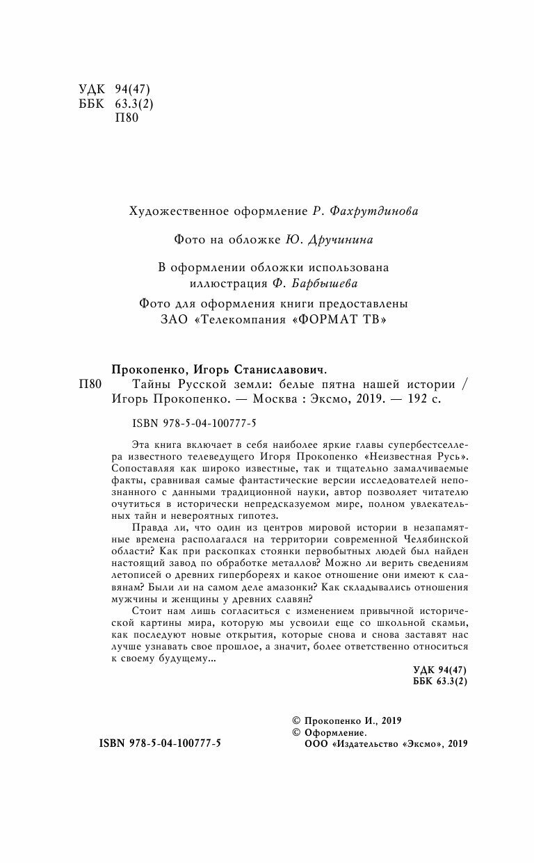Сервис сравнения цен СкидкаГИД предлагает сравнить цены на товар «Книга: Тайны Русской земли. Белые пятна нашей истории (Игорь Станиславович Прокопенко); Эксмо, 2019»