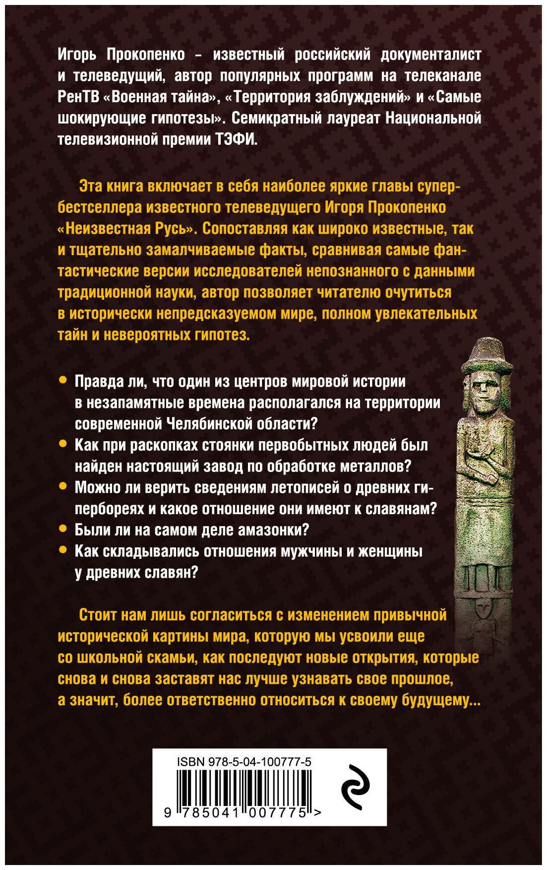 Эта книга включает в себя наиболее яркие главы супербестселлера известного телеведущего Игоря Прокопенко "Неизвестная Русь". Сопоставляя как широко известные, так и тщательно замалчиваемые факты, сравнивая самые фантастические версии исследователей непознанного с данными традиционной науки, автор позволяет читателю очутиться в исторически непредсказуемом мире, полном увлекательных тайн и невероятных гипотез.