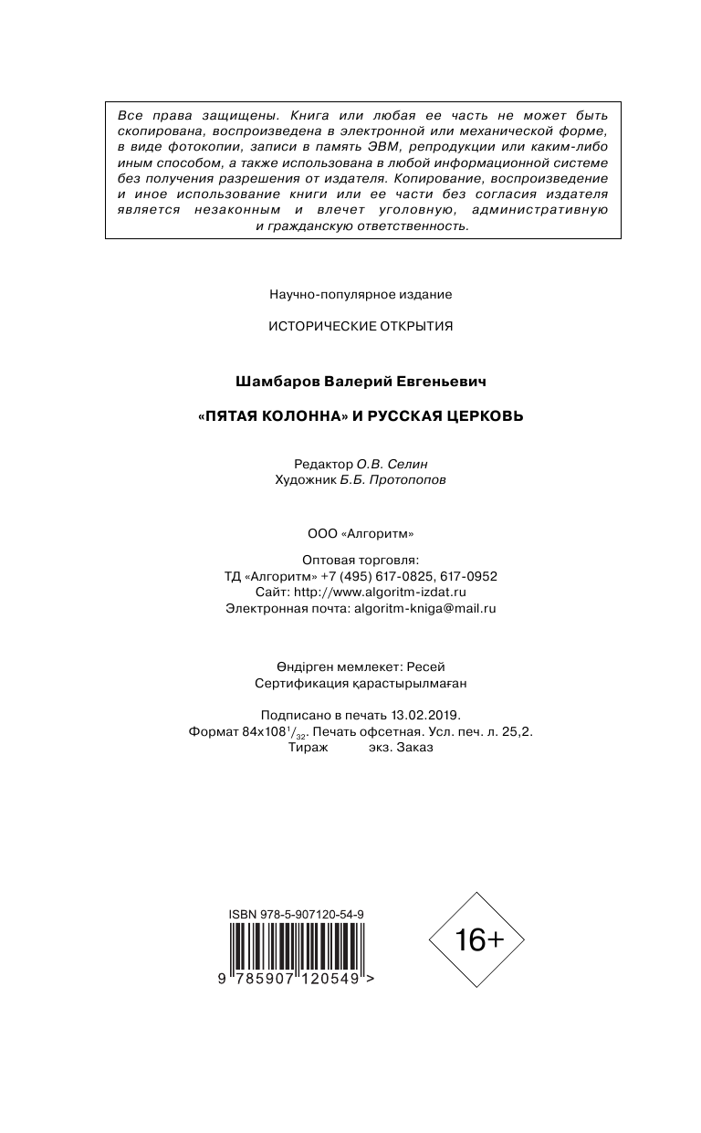 Сервис сравнения цен СкидкаГИД предлагает сравнить цены на товар «Книга: "Пятая колонна" и Русская Церковь. Век гонений и расколов (Валерий Евгеньевич Шамбаров); Эксмо, 2019»