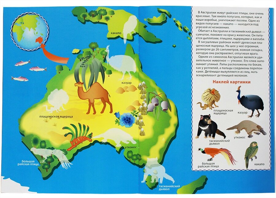 Увлекательные книги этой серии помогут юным любителям живой природы узнать много нового и интересного о животном мире всех континентов нашей планеты. С помощью красочных наклеек дети смогут создать свой собственный атлас животных. Путешествуя по континентам, они увидят редких и уникальных, а также известных представителей фауны; почерпнут важную информацию о повадках и образе жизни животных.