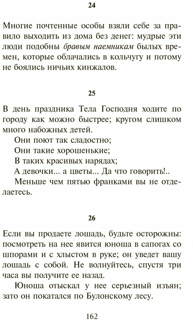 "...Кто такой порядочный человек, которому мы адресуем наше сочинение? Он еще молод, любит удовольствия, богат и умеет с легкостью зарабатывать деньги законным путем, неукоснительно честен во всем, чем бы он ни занимался, весел и остроумен, открыт и прям, благороден и великодушен. Именно к нему мы обращаемся, ибо желаем сохранить в его кошельке все те деньги, которые умельцы могут хитростью выманить у него так ловко, что он даже не заметит..."