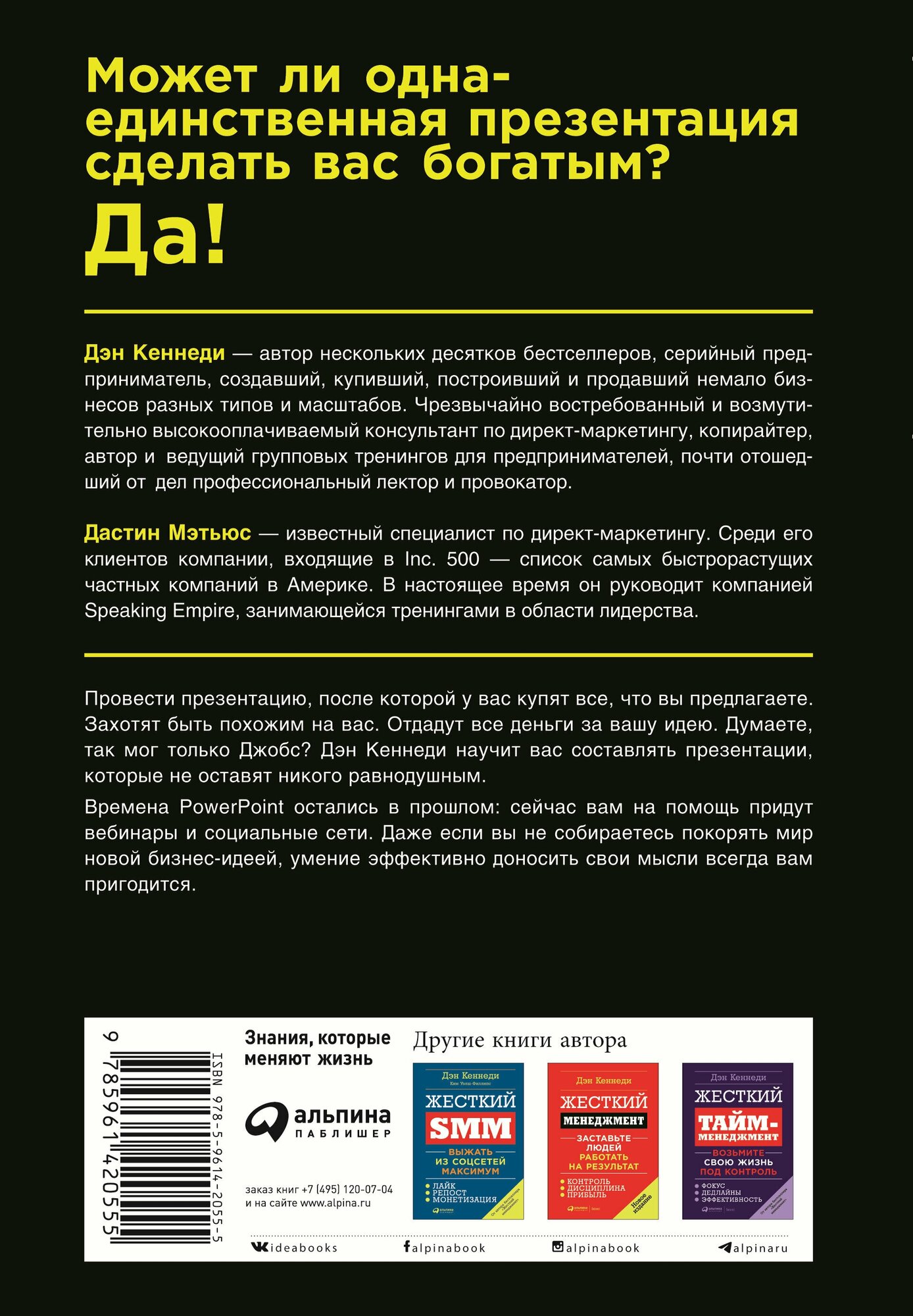 Жесткие презентации Как продать что угодно кому угодно (Мэтьюс Дастин (соавтор), Миронов Павел В. (переводчик), Кеннеди Дэн); Альпина Паблишер, 2019