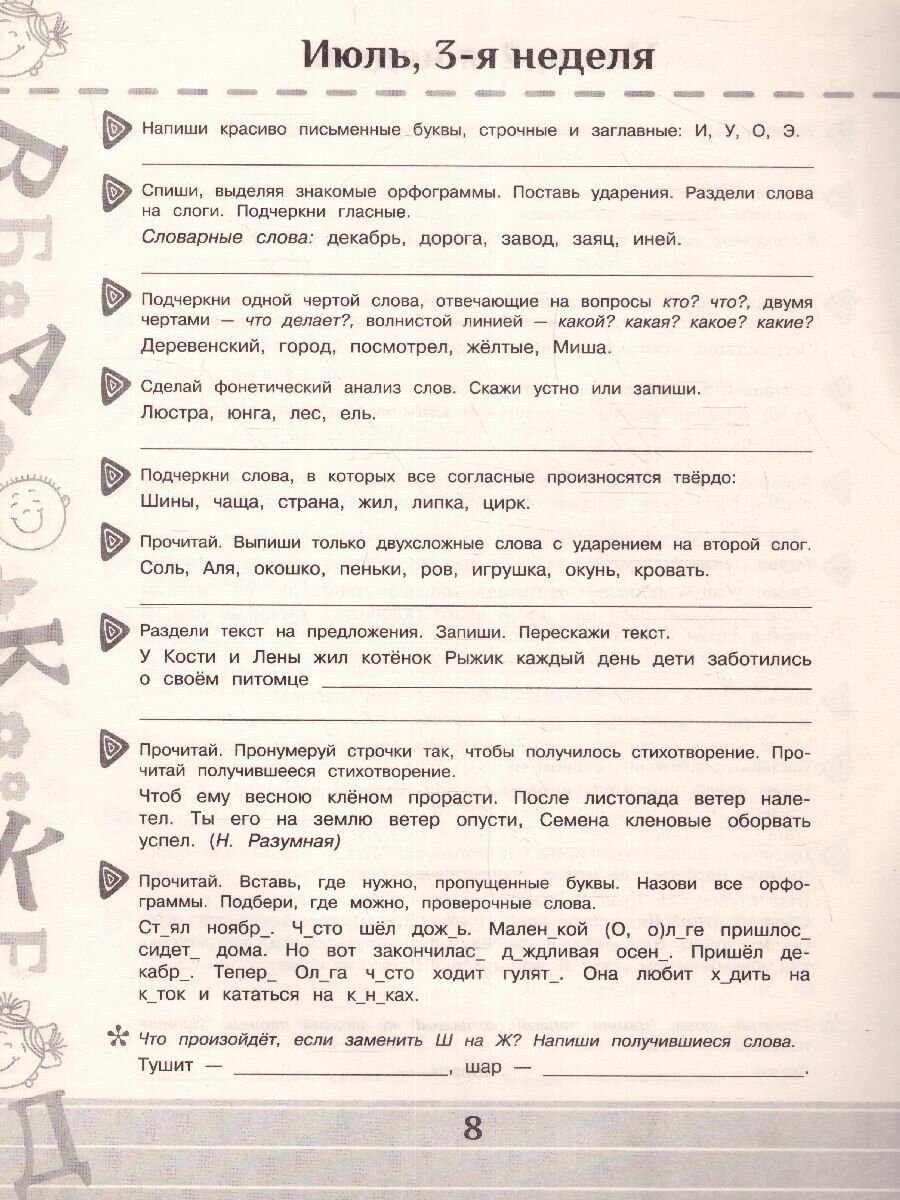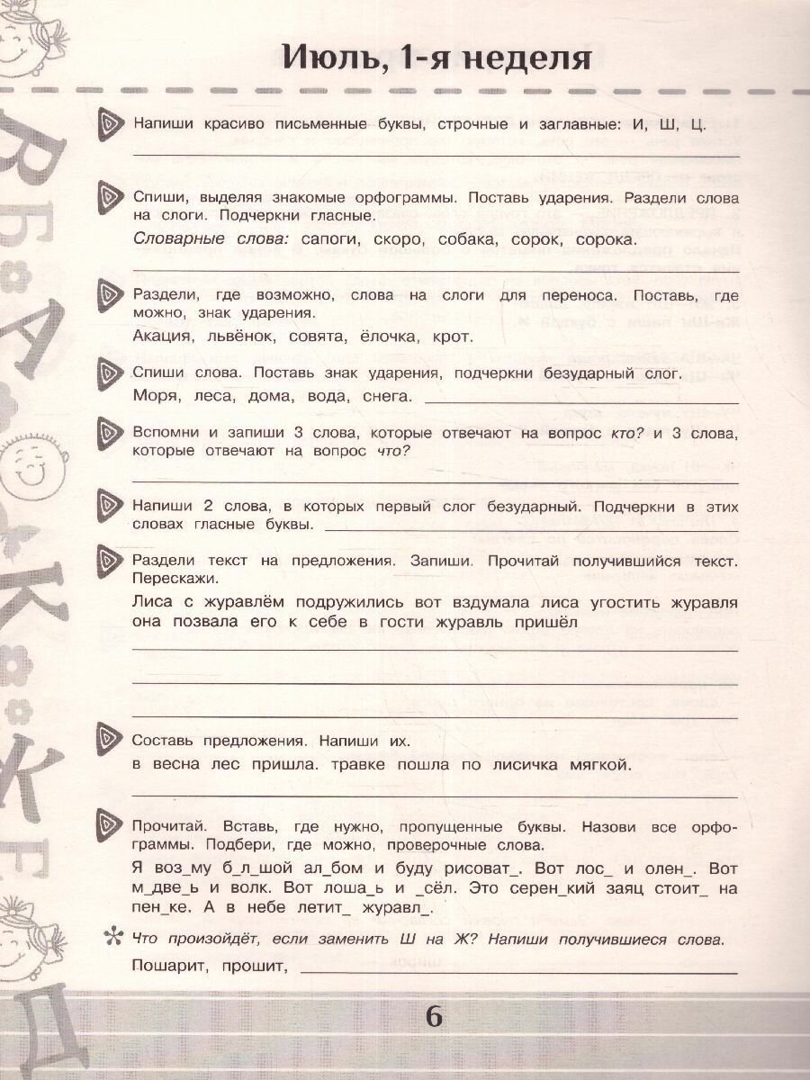 Если ребёнок в течение недели будет ежедневно тратить хотя бы 5-10 минут в день на выполнение заданий, то он хорошо повторит пройденный за год материал и легко вольётся в учебный процесс в сентябре.