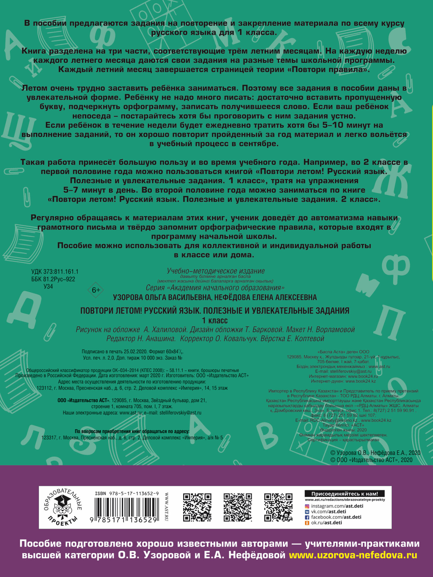 Русский язык 1 класс Полезные и увлекательные задания Повтори летом (Елена Алексеевна Нефедова, Ольга Васильевна Узорова); АСТ, 2020