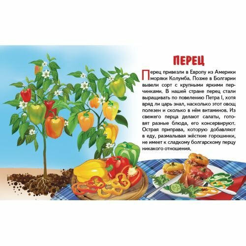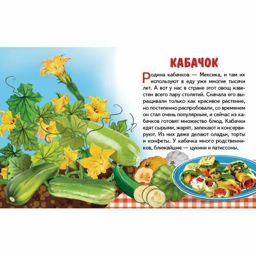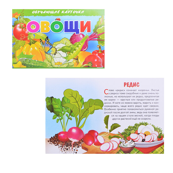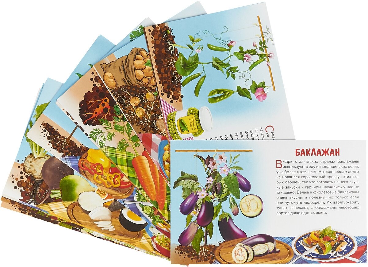 В комплекте карточек "Овощи" представлены самые популярные в нашей стране овощные культуры. Как они выглядят, что из них можно приготовить, ребенок увидит на реалистично нарисованных картинках, а из короткого текста узнает историю и некоторые любопытные особенности этих овощей.