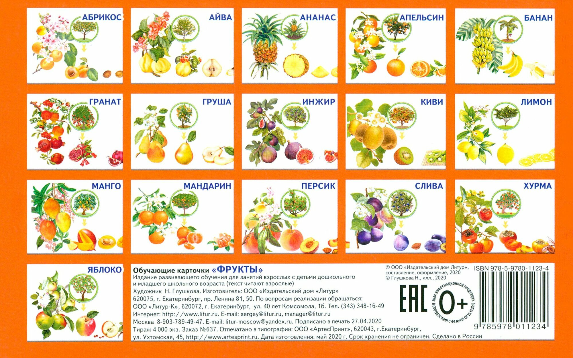 Фрукты Обучающие карточки (Глушкова Н. (худ.)); Литур, 2019
