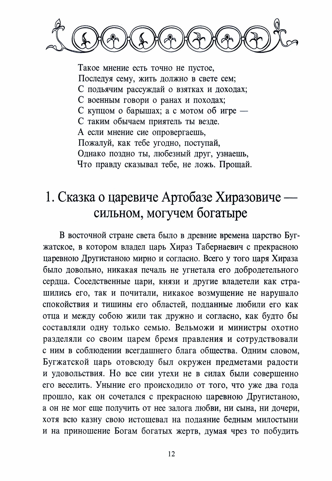 Старая погудка на новый лад — сборник сказок (1794-1795), составивший основную часть тома. Читая книгу, вдохновляешься глубиной русского языка, красотой сюжетов. Читая «предуведомление», оставленное автором-составителем, возникает чувство благодарности к человеку, который смог сохранить эти кусочки русской культуры:.«Но может быть, некоторые начнут на меня за сие роптать, для чего я время употребил на то маловажное дело и для чего не занимался каким- нибудь поважнее...».В дополнение к трем частям Старой погудки были размещены еще четыре сказки отдельных изданий.