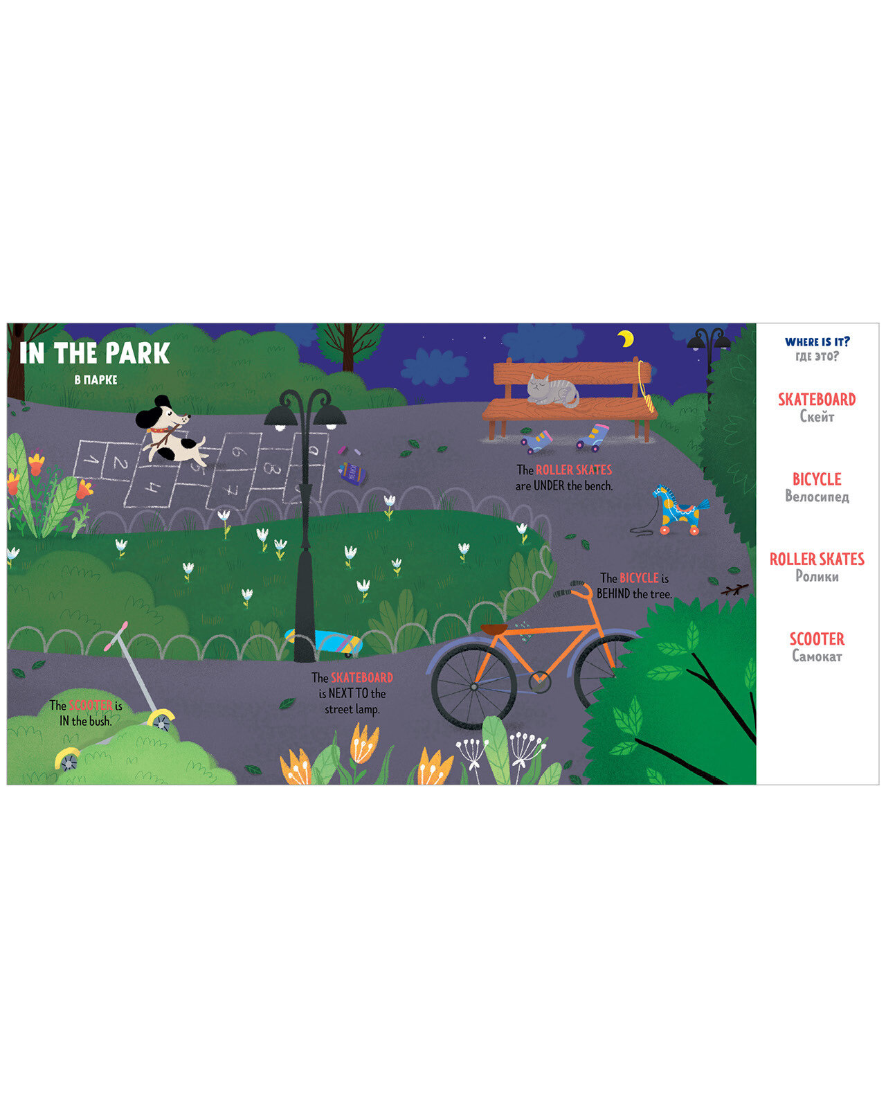 Книга «Things that go. Транспорт» — это игры и занятия на каждый день, которые помогут вырастить билингвального ребенка. Яркие рисунки, плотный картон, удобный формат и любимая тема малышей — транспорт — позволят изучать английский с удовольствием уже с рождения!Рассматривайте с малышом сюжетные картинки, начинайте с повторения новых слов и очень скоро вы сможете вместе сочинять целые истории. Вы узнаете, как называются самые популярные виды транспорта в городе, парке и в деревне, что называют служебным транспортом и какие новые средства передвижения появляются у нас зимой. Поиграйте в 5 веселых игр, среди которых Memory и пантомима, поищите тени предметов и научитесь писать первые буквы на английском. Трамваи, вертолеты, ролики, санки и еще более 70 новых слов ждут вас в книге «Things that go. Транспорт».