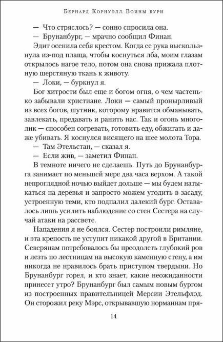 В "Воинах бури" Корнуэлл не упустил ничего из этого: в очередной заварушке Утред победил, врагов с носом благодаря хитрости оставил, очередному королю землю завоевал, всем священникам, которых встретил, популярно объяснил, что он о них думает.