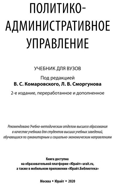 Политико-административное управление Учебник (Владимир Савельевич Комаровский); ЮРАЙТ, 2019