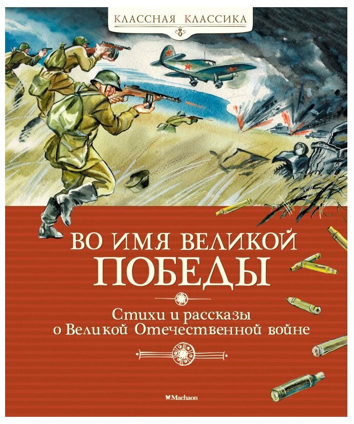 Во имя Великой Победы Стихи и рассказы о Великой Отечественной войне (Берестов Валентин Дмитриевич, Твардовский Александр Трифонович, Кассиль Лев Абрамович, Чаплина Вера Васильевна, Митяев Анатолий Васильевич, Алексеев Сергей Петрович, Баруздин Сергей Алексеевич, Скребицкий); Махаон, 2019