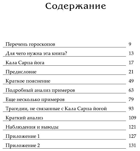 .В книге приводятся все известные разновидности Кала Сарпа йоги и их результаты. На гороскопах многих успешных и известных личностей (в т.ч. Ошо Раджниш) с использованием дробных карт и планетарных периодов автор демонстрирует нам, действительно ли данная зловещая комбинация работает, или неприятности в жизни человека показаны другими факторами гороскопа.