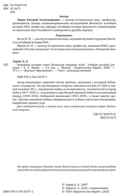 Новейшая история стран Латинской америки Куба Учебное пособие (Евгений Александрович Ларин); ЮРАЙТ, 2019