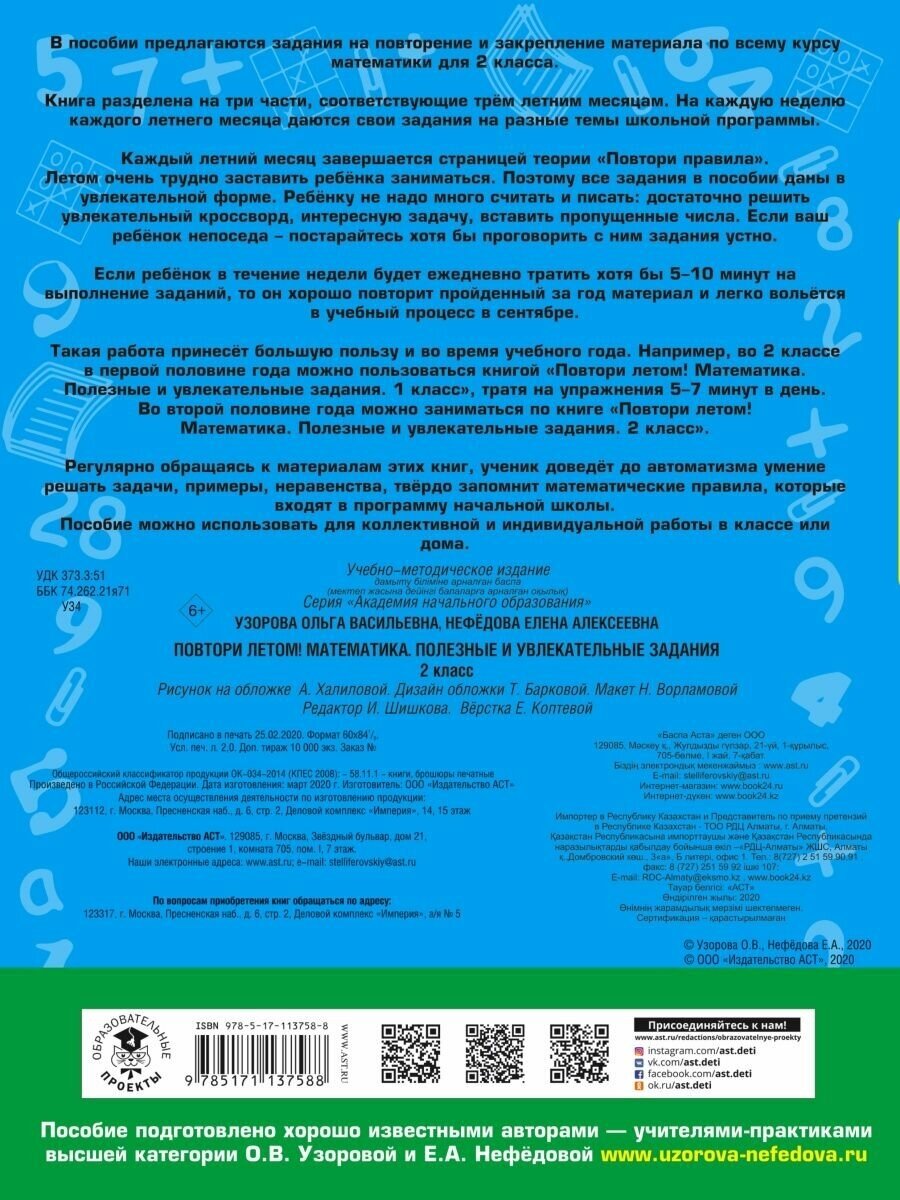 Математика 2 класс Полезные и увлекательные задания повтори летом (Елена Алексеевна Нефедова, Ольга Васильевна Узорова); АСТ, 2020