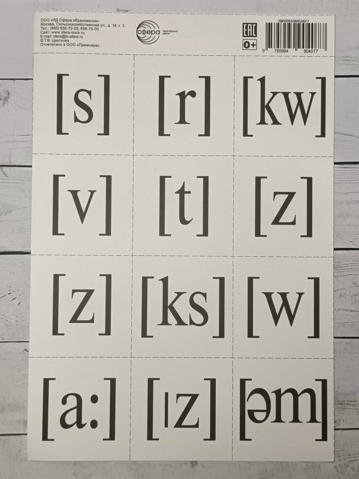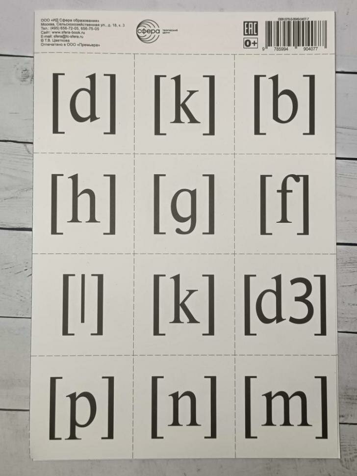 Английский алфавит разрезной с транскрипцией (Цветкова Т.); Творческий центр Сфера Издательство, 2019