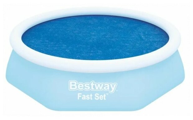 Прозрачный плавающий тент Bestway убережет ваш бассейн от загрязнений в виде мусора или насекомых. К тому же, тент замедлит остывание воды за ночь, что очень удобно, если Вы не имеете возможность менять воду каждый день. Материалом изготовления служит термоизолирующая пленка, которая пропускает солнечные лучи и создает эффект как у воздушного барьера, благодаря этому, в солнечную погоду вода в бассейне лучше прогревается, а ночью удерживает накопленное тепло.
