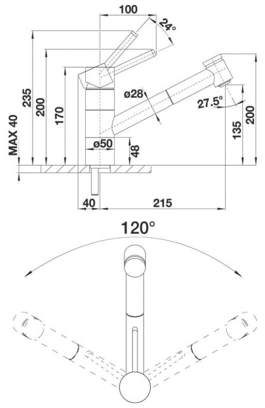 Высокий излив облегчает работу за мойкой Выдвижной излив с функцией переключения струя/душ Большой радиус действия Цвет смесителя полностью совпадает с цветами моек и чаш из материала SILGRANIT® Привлекательная комбинация хрома и цветов SILGRANIT®