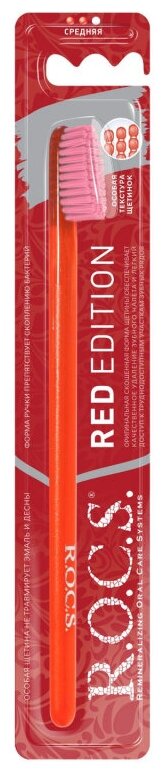 Классическая зубная щётка R. O. C. S. средней жесткости позволит профессионально очищать зубы. Ровная форма пострижки увеличивает рабочую поверхность, обеспечивая максимальный контакт со всеми участками поверхности зуба и качественное удаление зубного налета.