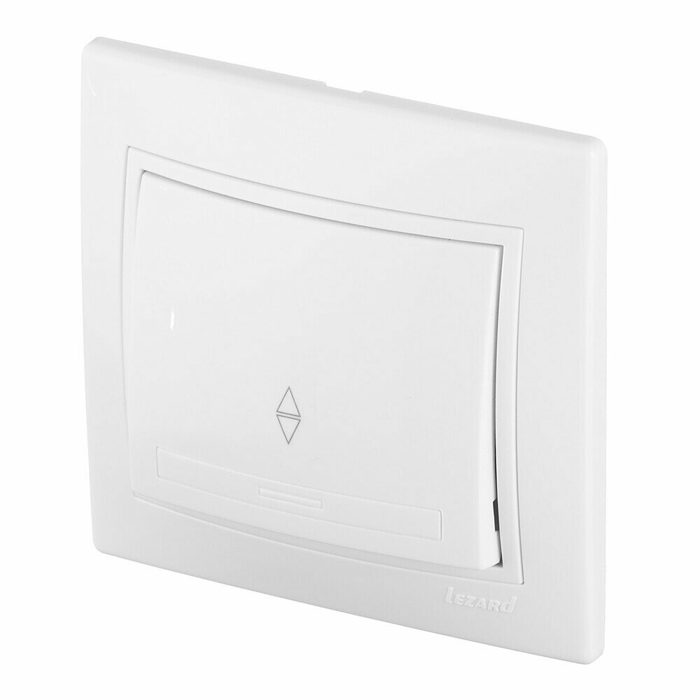 Выключатель проходной белый с белой вставкой LEZARD MIRAПредназначен для управления одним источником света из разных мест в жилых и нежилилых помещениях.Сочетание классических цветов и строгого дизайна позволяет изделиям этой серии органично вписываться в любой интерьер.