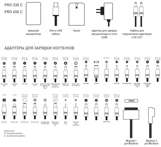 | Кабель в комплекте | 28 сменных коннекторов (для ноутбуков) |