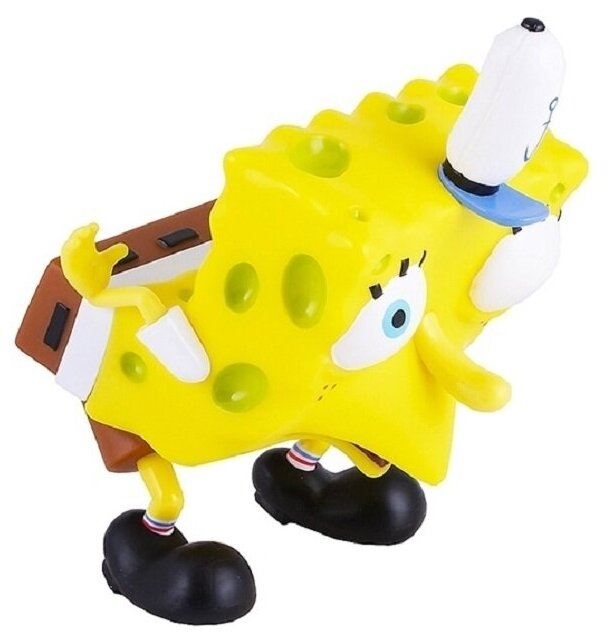 Фигурка Спанч Боба из мем-коллекции с подвижными руками и ногами. У игрушки насмешливое выражение лица, большие голубые глаза с торчащими ресницами, торчащий нос и приоткрытый рот. На голове морская белая фуражка с якорем. Высота игрушки 20 см.