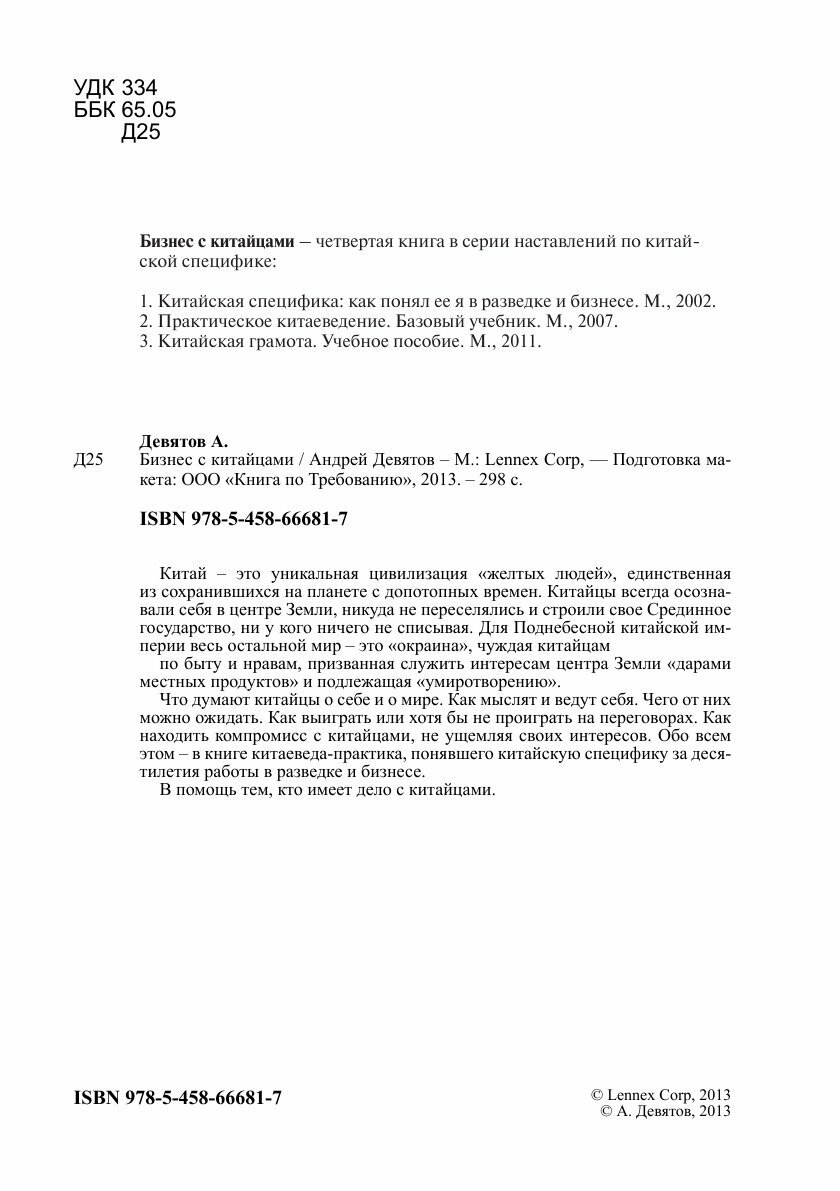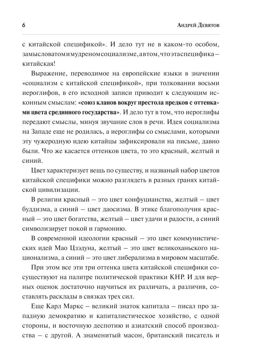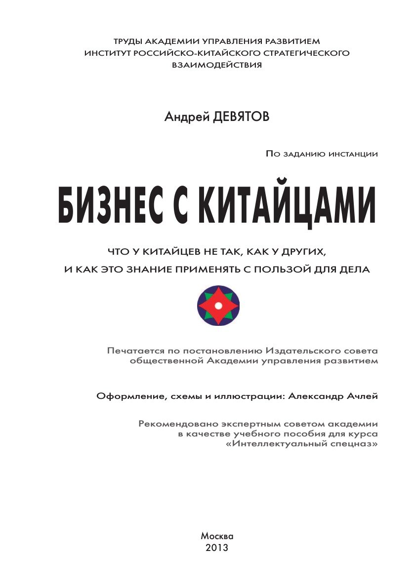Андрей Петрович Девятов,,,,специалист по Китаю, бывший разведчик, хотя бывших не бывает) Человек с высоким интеллектом, эррудированный...читаешь его книги и понимаешь насколько ты вообще ничего не знаешь и порой не понимаешь. Рекомендую к прочтению всем, а особенно его черное издание книг. В книге показано как и чем в бизнесе китайцы отличаются от все остальных и показано это с высоты опыта