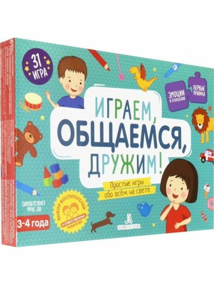 В набор входит: 280 карточек, 13 полей для игр, 24 пазла, Настольный театр, Путеводитель по играм с правилами и советами для взрослых. Самые первые игры для формирования социального и эмоционального интеллекта. Помогают малышам понять себя и мир вокруг, знакомят с самыми главными правилами жизни в обществе. Социальные компетенции формируются в игре и совместной деятельности, через знакомство с миром природы, миром людей, предметным миром.