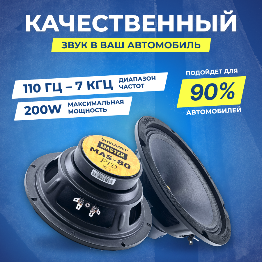 Доступная акустика SWAT для тех, кто делает первые шаги в громком мире. Калибр 8 дюймов – это возможность построить оглушающий фронт, получив бо́льшую площадь излучения с меньшим количеством динамиков. «Восьмёрки» серии Master сконструированы по проверенной годами схеме: стальная рама, диффузор из целлюлозы с пропиткой и ферритовый магнит – ничего лишнего, только самое нужное.