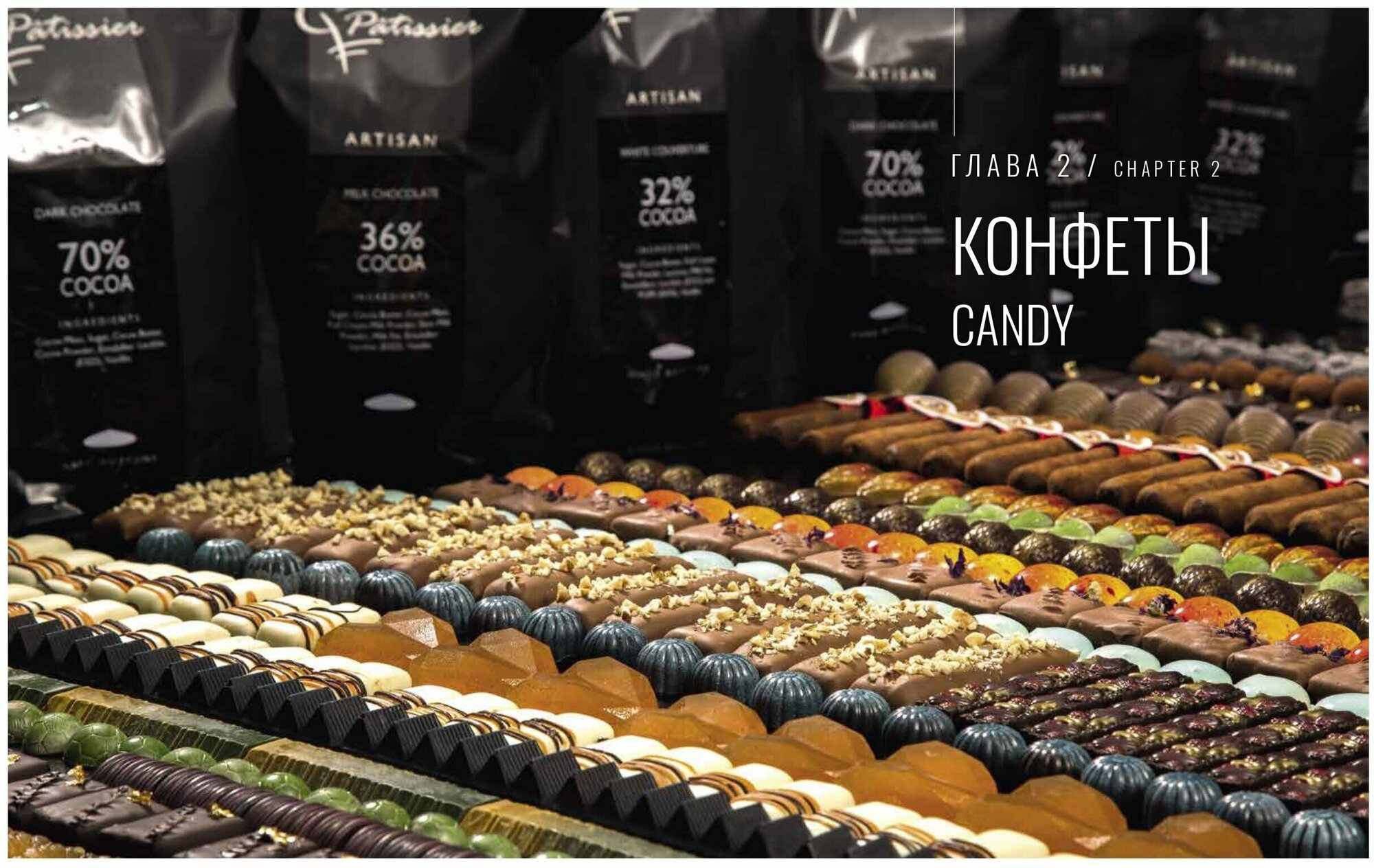 Очень большое разочарование в книге, мне первый раз стало жалко потраченных денег. Я бы назвала эту книга - реклама определенной марки шоколада. Очень мало текста, рецепты ни о чем, так как нет никакой конкретики, просто перечислены продукты, вес и как это все смещать. А как это можно смещать не зная технологии. Не советую покупать эту книгу, выбросите деньги на ветер.