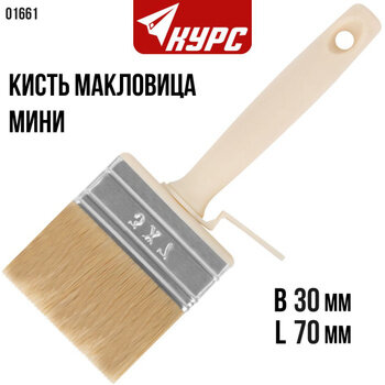 Макловица, натур. светлая щетина, сплошный пластиковый корпус, полая ручка, "мини" 25 х 125 мм. Для работы со всеми видами лакокрасочных материалов. Неразъемное крепление ручки. Выемка на ручке для закрепления макловицы на ведре, баночке для краски и т. д. Материал: натуральная светлая щетина, пластиковая ручка.