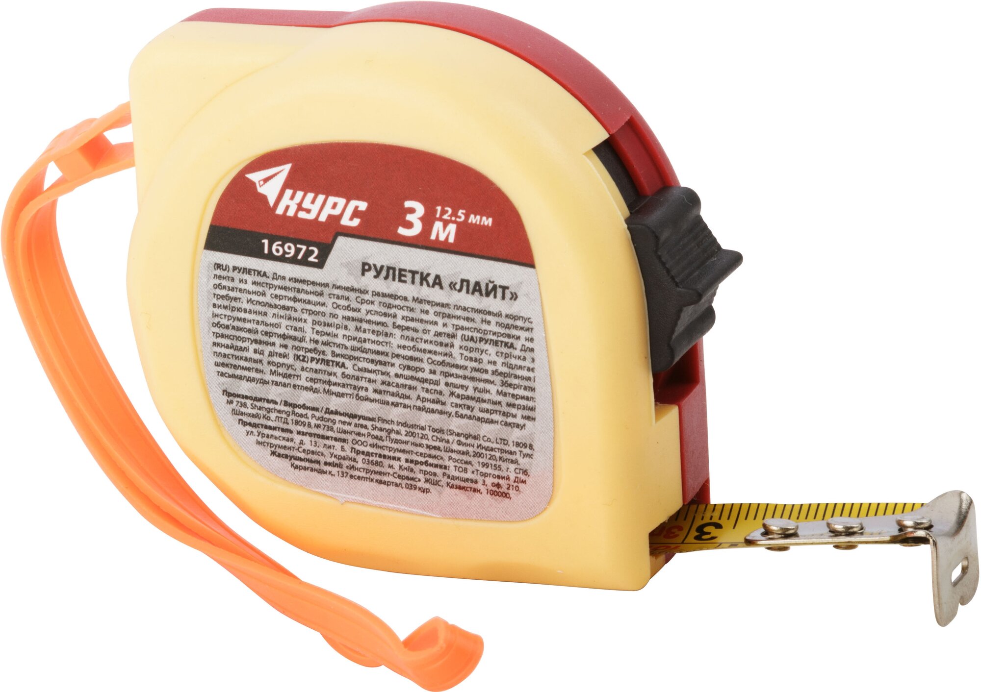 Рулетка пластиковая 2-х цветная "Лайт" 3 м x 12,5 мм практична и универсальна в использовании. Произведена из прочных материалов, что гарантирует высокое качество и долгий срок службы. Удобна в применении, необходима в быту.
