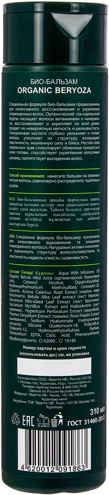 Karelia Organica био-бальзам для волос Organic Beryoza интенсивное укрепление и восстановление 310 мл Фратти НВ