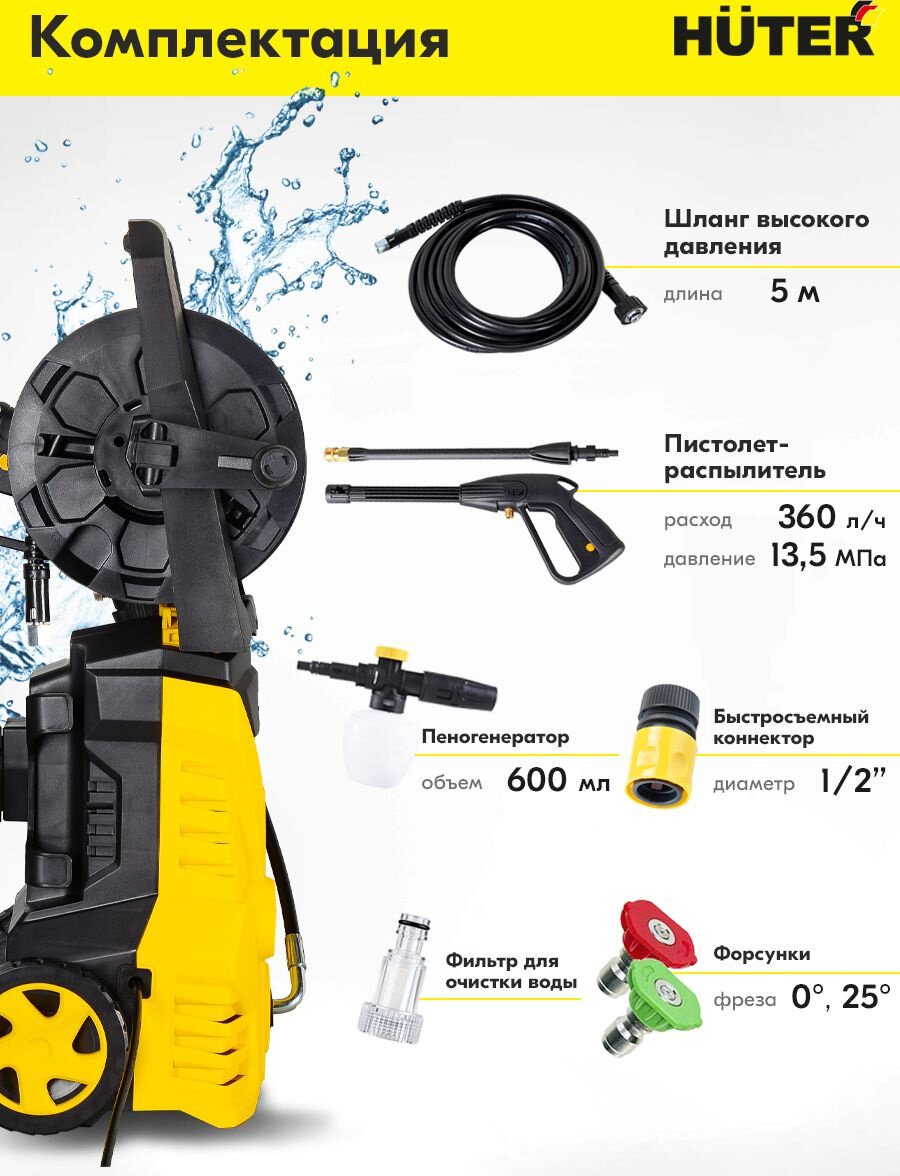 Минимойка Huter , мощность 1650Вт, максимальное давление 135Бар (70/8/9)